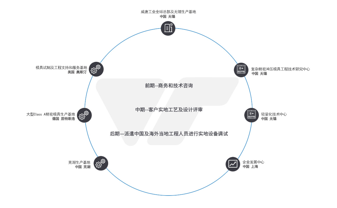 威唐工業模具事業部為全球客戶設計、制造并交付包括連續模、傳遞模及多工位模等在內的各類大中型精密復雜的模具產品。